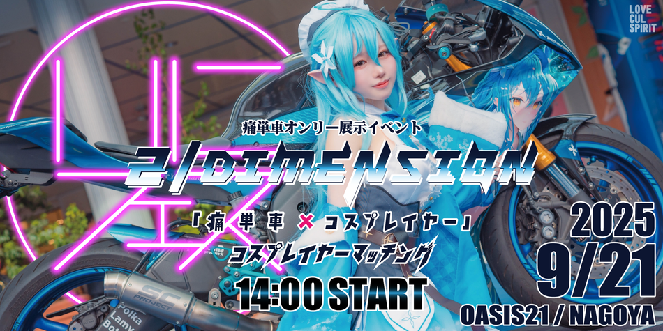 『2/DIMENSION』は痛単車(いたんしゃ)とコスプレイヤーによる併せを主体とした痛単車展示企画です。